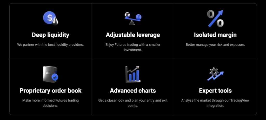 Open long or short positions on a variety of Crypto Futures, including Bitcoin, Ethereum, and Litecoin.